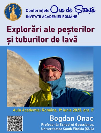 Academia Română invită publicul joi, 19 iunie 2025, la conferința „Explorări ale peșterilor și tuburilor de lavă”, prezentată de dr. Bogdan Onac, profesor la School of Geosciences, Universitatea South Florida (SUA). Evenimentul va avea loc în Aula Academiei Române din Calea Victoriei nr. 125, începând cu ora 17, și face parte din seria de conferințe cu public „Ora de știință”, inițiată de Academia Română.