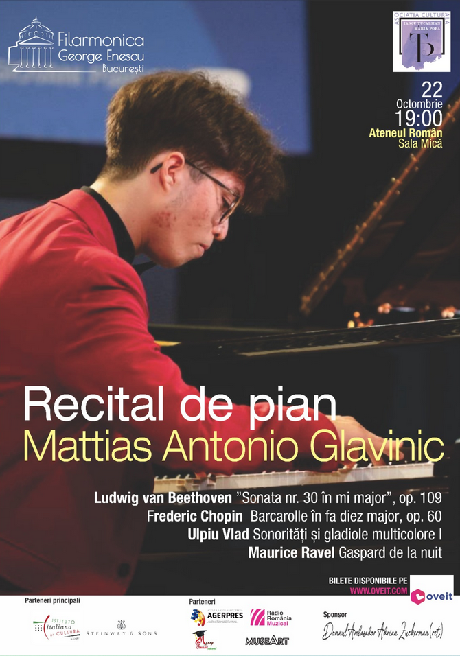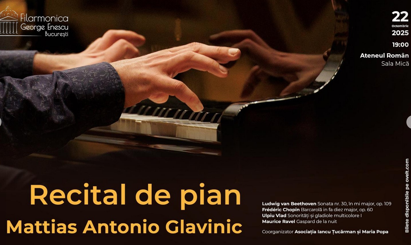 Pe 22 octombrie, la Ateneul Roman, în Sala Mică va avea loc un eveniment exceptional organizat de As Culturală Tucarman Popa impreuna cu Steinway & Sons Italia, Filarmonica George Enescu si MuseArt Academy