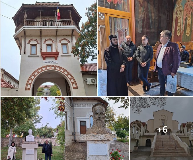 Binecuvântat de o blândă ploiță, sub geana înserării, pelerinajul la locuri ale sfințeniei, oferit participanților la Universitatea de Vară “Izvorul Mureșului” , ne-a purtat la curate izvoare ale credinței  ortodoxe.  După închinarea la Catedrala Arhiepiscopiei Tomosului, înseninați de îndrumările părintelui călugăr Antim, am ținut drumul  spre Peștera Sfântului Andrei. Sfântul Apostol care ne-a creștinat neamul, trăind vreo 20 de ani printre români, ne-a luminat calea spre Mănăstirea DERVENT, loc de tămăduire trupească și sufletească. Se transmite din neam în neam că în acest loc au fost martirizati patru crestini, iar crucile au crescut din pământ acolo unde s-a săvârșit martirajul. Cele patru cruci de piatră au forțe miraculoase de tămăduire.  În sec. X d. Hr. în proximitatea cricilor a fost înălțată o mănăstire, distrusă în timpul năvălitorilor pecenegilor. Apoi au năvălit turcii, Dobrogea nimerind sub ocupația sultanului Ahmed Bei, care a luat crucile sub ocrotire., surprins de puterea lor de tămăduire. În 1885, un cioban din zonă, surdo-mut din naștere,  s-a vindecat, după o noapte petrecută sub aceste Cruci. În 1923, Episcopul Tomosului, ÎPS Ilarie reînființeză mânăstirea. Încercările, însă, s-au ținut lanț. La un deceniu de la deschidere,  paraclisul a ars până la temelie. Și iarăși Dumnezeu a arătat puterea și milostivia Să. În acel dezastru n-a ars nici o icoană, sfintele odoare păstrându-se în muzeul mănăstirii. În 1936 a fost sfințită piatră de temelie a actualei biserici cu trei altare,  în cinstea Sfintei Cuvioasei Parascheva,  Sfântului Mucenic Gheorghe și cu hramul Înălțarea Sfintei Cruci. La data sfințirii bisericii, în 1942, preacuviosul părinte Elefterie Mihail a fost ridicat la rangul de protosinghel. Și iarăși vânturi rele s-au năpustit din partea regimului comunist. În 1959 Mănăstirea a fost lichidată, doar Biserica rămâne să fie din 1970 ca locaș de mir al satului  Galița.  Clădirile mănăstirii au fost date în folosință   I.A.S. Ostrov. Din 1990 mănăstirea DERVENT își reia menirea de protectoare a valorilor creștine și alinare a suferințelor omenești. I-a prelungit Dumnezeu zilele părintelui Elefterie Mihail pentru a se întoarce la DERVENT. Peste câteva luni a plecat la Domnul,  fiind înmormântat lângă biserică.