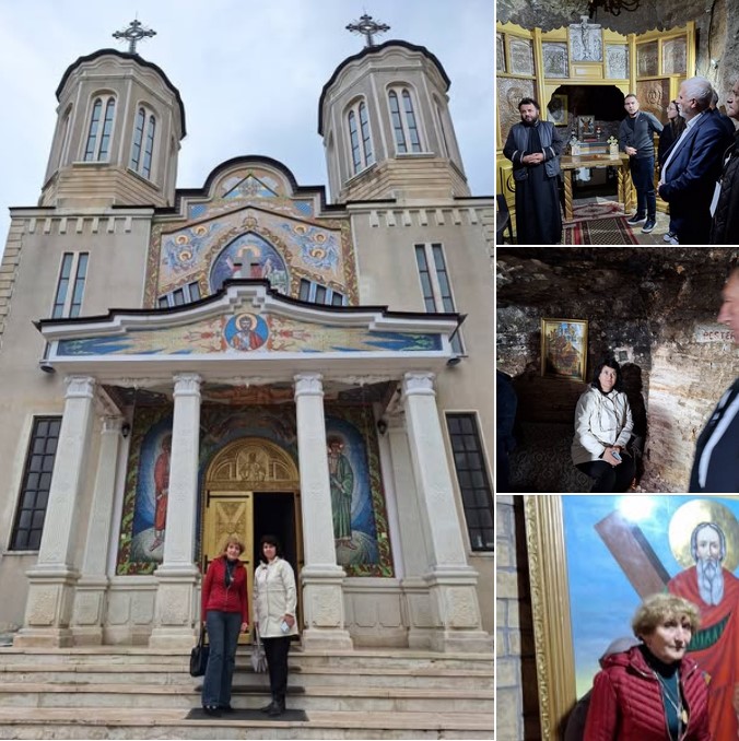 Ne-a însoțit și Sfântul Andrei pe parcursul conferinței Universității , de data aceasta de toamnă,   “Izvorul Mureșului”, chemându-ne la marginea de pădure de lângă localitatea Ioan Corvin, unde  la 1920 a fost descoperită peștera Sa, considerată poarta creștinismului în România, locul nășterii credinței creștine la români. Tot acolo se înalță și mănăstirea care îi poartă numele și-i veghează cu nemărginită credință liniștea și lumina ce îmbrățișează această Peșteră, creație a lui Dumnezeu. „Era pământ uscat aici, dar când a venit Apostolul Andrei, au ieșit din adâncuri șapte izvoare. Aici Sfântul cu ucenicii săi s-au adăpostit timp de cinci ani. N-au plecat până n-au înălțat o mănăstire puternică în anii 60 d. Hr., în care s-a făcut neîntrerupt slujbă câteva sute de ani, până au năvălit turcii și au dărâmat-o. Erau cinci mii de călugări, toți fiind omorâți de păgâni. Din 84 ani de viață, 60 de ani Sfântul Apostol Andrei a propovăduit învățătura lui Hristos, până la momentul martirizării. Epoca regimului comunist a așternut uitarea peste aceste locuri sfinte. În 1990 au început lucrările de amenajare și s-a înființat aici schitul de călugări. Din 2001 până la 2006 au fost definitivate lucrările de construcție ale bisericii mari și pictura interioară”, ne-a povestit părintele monah, întotdeauna bucuros de pelerini. În pragul peșterii se află patul sfântului, cu perne moi, pregătit parcă pentru odihna Mucenicului, dacă va fi să mai treacă prin Dobrogea. În peșteră se țin de trei ori pe zi slujbe, de cele mai multe ori fără de lume din afară. Am ieșit din paradisul Întâiului Chemat pentru luminarea poporului român, pășind atent ca să nu calc iarba ce crește din oasele călugărilor martiri, din bătătura urmelor sfinte pe acest pământ. (M.T.)