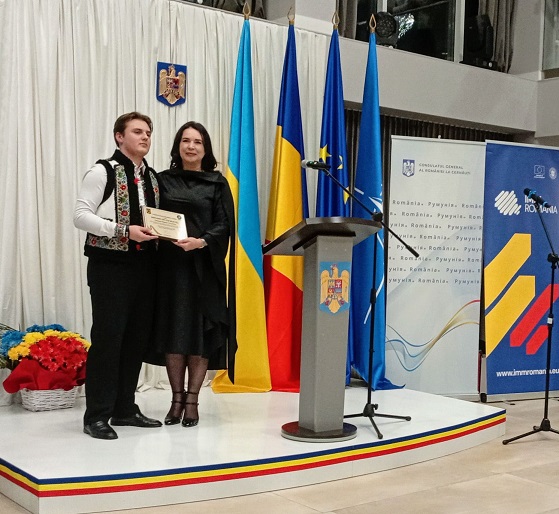 Doamna Consul General Irina Loredana Stănculescu a oferit diplome și premii de excelență unor distinși oameni de cultură din Regiunea Cernăuți, unor sponsori culturali precum și unor formații artistice și conducătorilor acestora. De asemenea, a evocat sprijinul important pe care statul român îl acordă tinerilor și foarte tinerilor etnici români prin Departamentul pentru Românii de Pretutuindeni, sprijin sub formă de burse, de tabere (ARC) în România, finanțări de proiecte culturale și altele.
