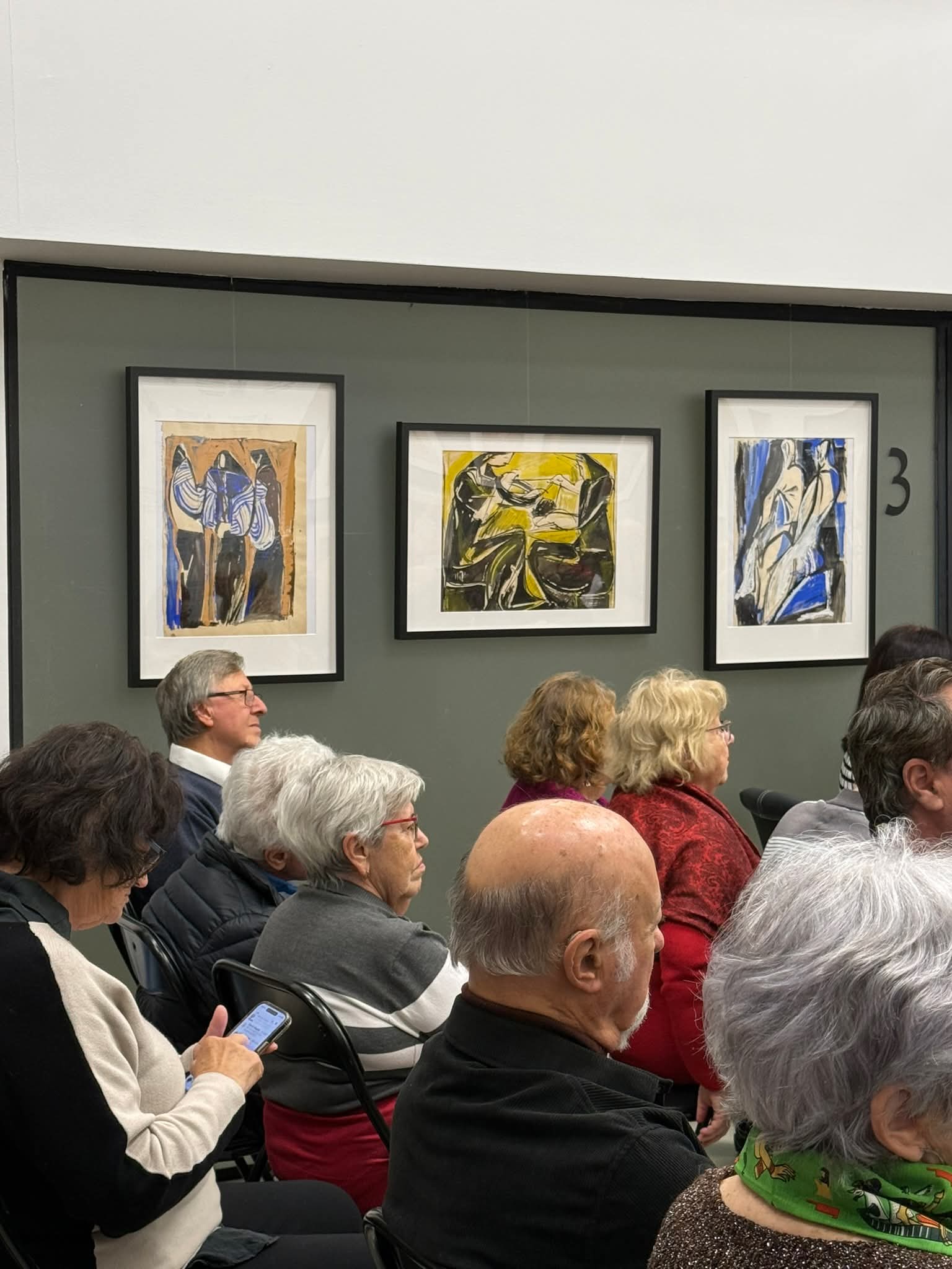 Domnul Adrian Buga a adus cu sine tablouri ale pictoriței de origine evreiască Eva Cerbu, care au împodobit pereții sălii de conferință.