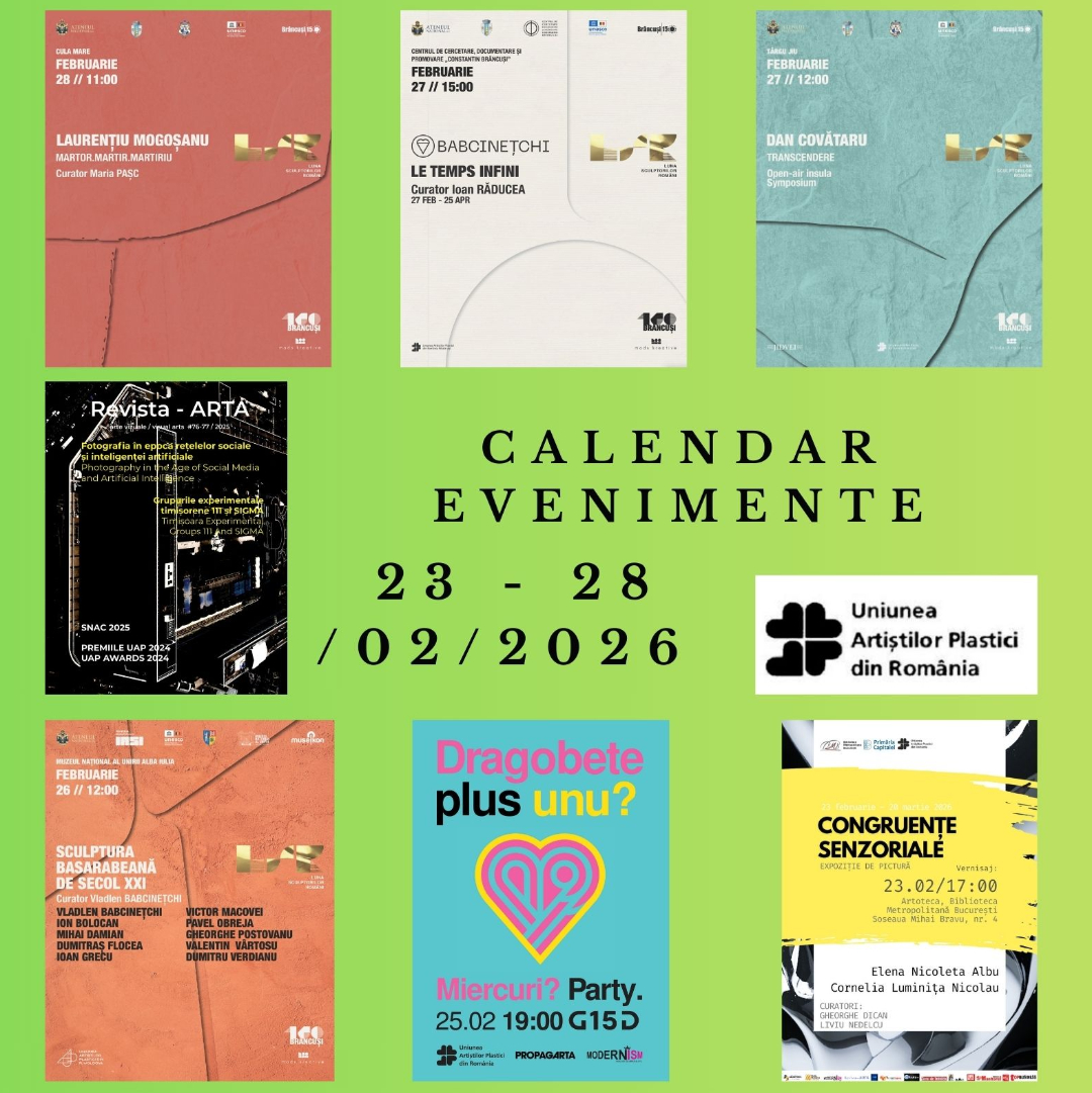 Uniunea Artiștilor Plastici din România recomandă câteva evenimente plastice care se vor desfășura în săptămâna 23 februarie – 1 martie 2026: