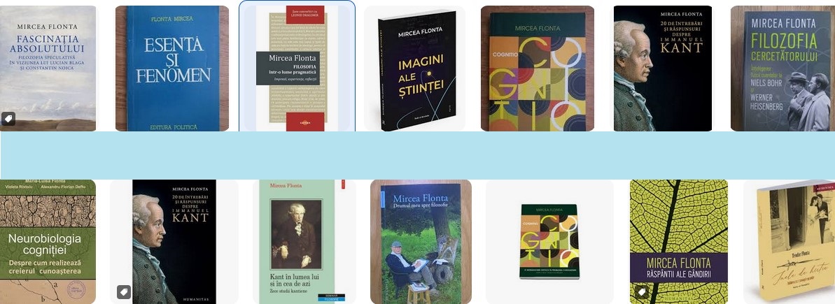 Contribuțiile semnificative ale profesorului Flonta sunt prezentate în volumele: Perspectivă filosofică şi rațiune științifică. Presupoziții filosofice în știința exactă, 1985; Imagini ale științei, 1994 și 2024, Kant în lumea lui şi în cea de azi, 2005; Gânditorul singuratic. Critica şi practica filosofiei la Ludwig Wittgenstein, 2008; Darwin şi după Darwin, 2010 și 2026; Răspântii ale gândirii, 2017; Filosofia cercetătorului, 2022. Detalii despre cariera profesorului pot fi găsite în lucrarea 60 de ani în universitate. O carte dedicată profesorului Mircea Flonta, vol. I şi II, 2015 şi Drumul meu spre filosofie, un eseu din anul 2016.
