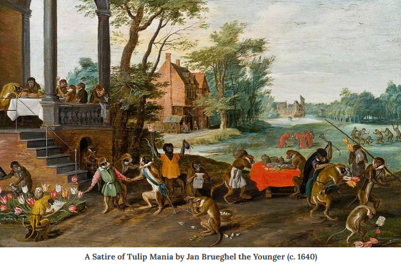 Se vindeau „promisiuni” pe contract pentru bulbi care nici nu fuseseră scoși încă din pământ. În culmea nebuniei, un singur bulb dintr-o specie rară de lalea cu dungi deosebite ajunsese să coste cât o casă în Amsterdam sau cât salariul unui meșteșugar pe mai mulți ani de muncă. Unii culturologi contemporani afirmă că tulipomania ar fi căpătat aspecte exagerate odată cu trecerea timpului, dar fenomenul a existat. Însă într-o zi de februarie 1637, a venit prăbușirea: la o licitație, cineva a refuzat să mai plătească prețul cerut. Panica s-a răspândit instant. Toată lumea a vrut să vândă, nimeni nu mai voia să cumpere bulbi de lalele, iar prețurile s-au prăbușit cu 90% peste noapte. Multe familii înstărite s-au trezit ruinate, deținând doar niște cepe de flori care, brusc, nu mai valorau aproape nimic.
